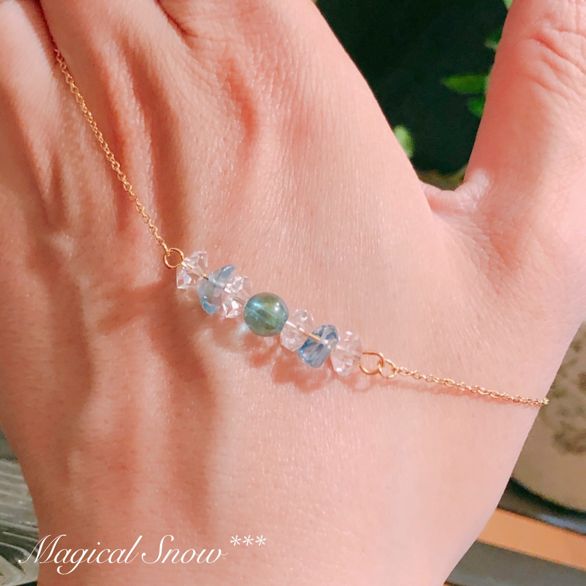これからの季節にオススメ♪アクアオーラと水晶のアンクレット